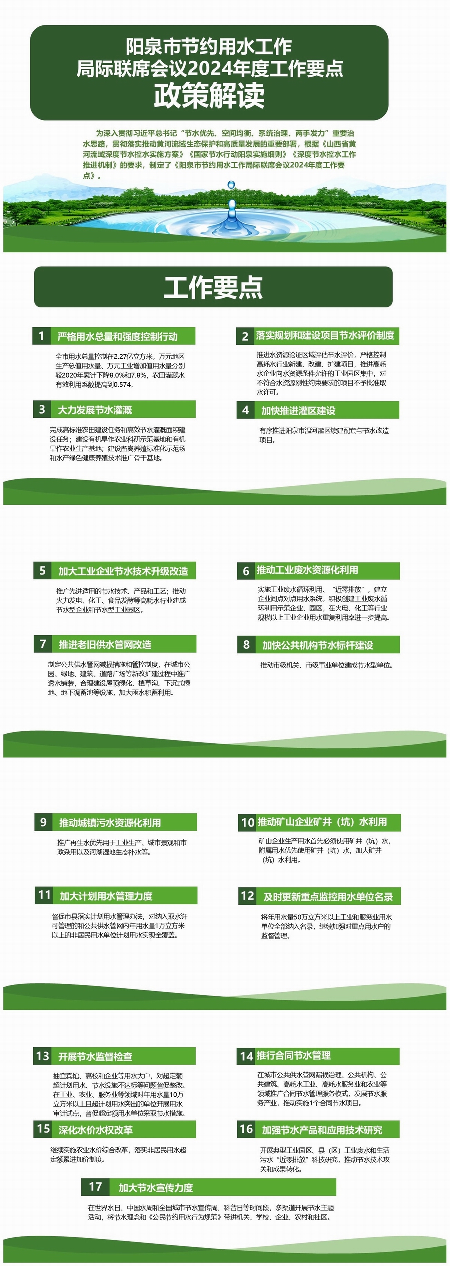 《阳泉市节约用水工作局际联席会议2024年度工作要点》政策解读